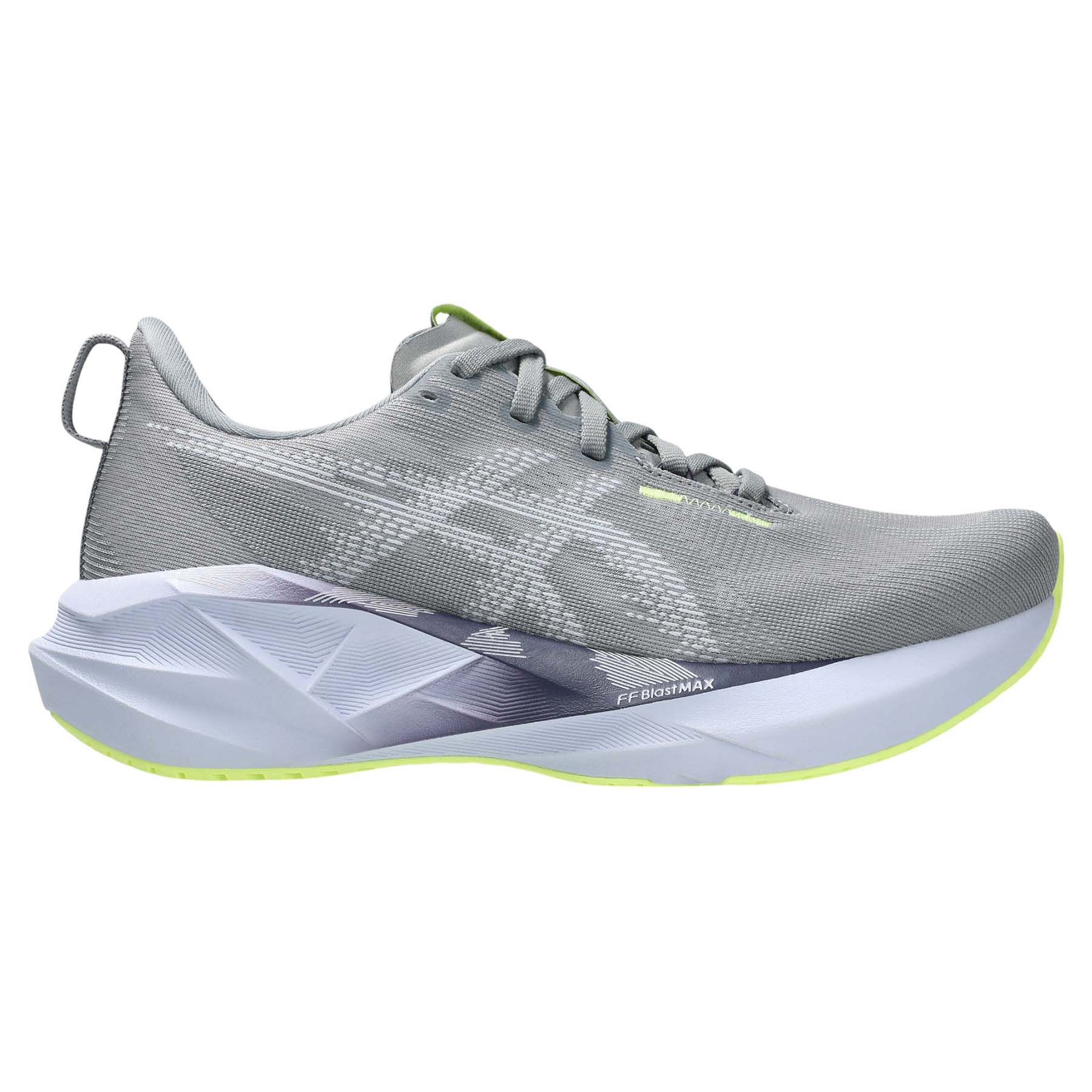 Navigate the roadways with the ASICS NOVABLAST 5 Running Shoe for women. Ideal for road running, these shoes offer the dynamic bounce of a trampoline-inspired outsole design, coupled with the high-cushioning of the ASICS FF BLAST MAX midsole. The tongue wing construction and TRUSSTIC technology ensure a secure, stable fit while the GEL technology softens each footstrike. Reflective details enhance low-light visibility for safety. Emphasizing sustainability, over 75% of the upper is crafted from recycled materials, and the sockliner utilizes a dyeing process that significantly reduces water usage and carbon emissions.
