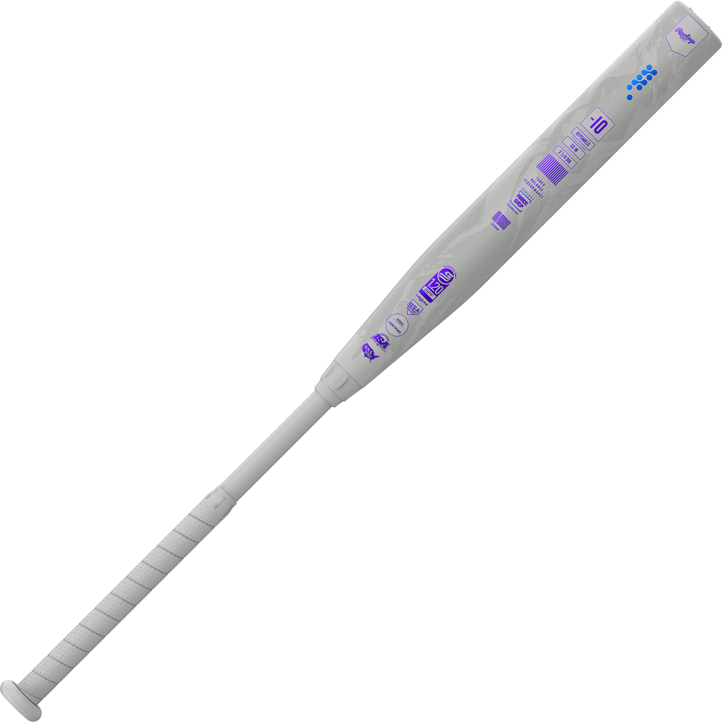 The Rawlings Mantra Reverse (-10) Fastpitch Softball Bat - 2025 is a two-piece composite bat for high school and college level fastpitch players. The ultra thin handle connects to the In/Tense carbon composite barrel via the F2 collar and is packed with Reverse Three Step barrel technology for lots of pop at the plate. The bigger sweet spot makes hitting easier, more fun, and will send you around the bases.