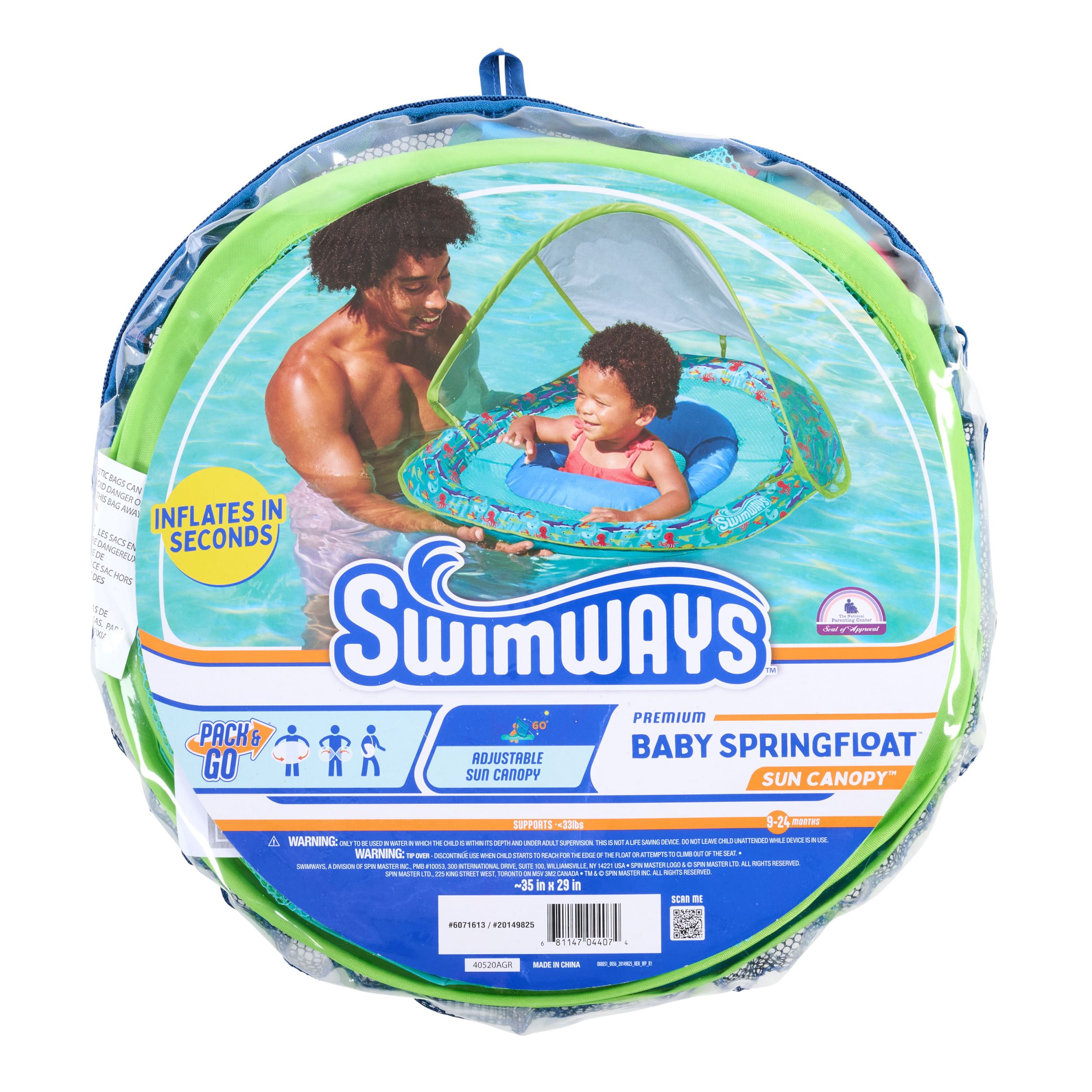 Baby Spring Float: Made for kids 9-24 months old and comes with all the same great features of the original Infant Spring Float with the addition of Hyper-Flate Valve Technology and a bold new design!