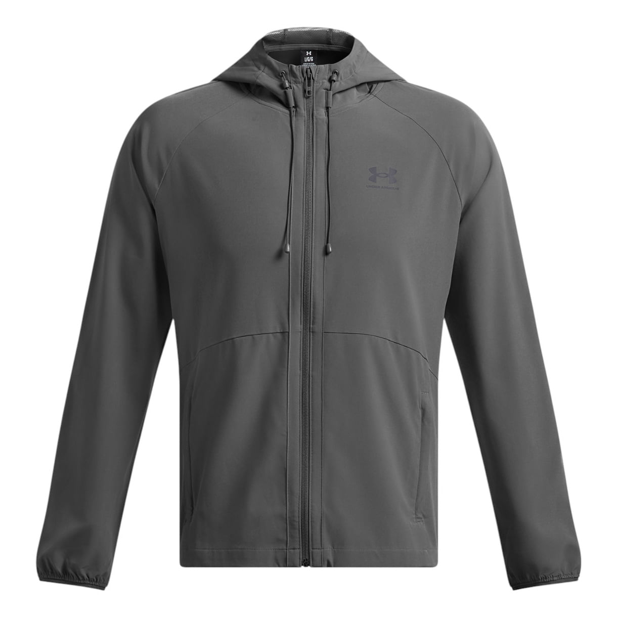 Stay protected and move freely in the great outdoors with the Under Armour UA Vibe Stretch Woven Jacket for men. Designed for active individuals braving unpredictable weather, this performance jacket features UA Storm technology to repel water while maintaining breathability. Wind-resistant materials shield against harsh elements, while lightweight stretch woven fabric increases mobility and durability. The three-panel hood provides ample coverage and adjusts with a bungee for a perfect fit. The jacket also comes equipped with zippered hand pockets, ensuring valuables stay secure. Finished with exposed elastic binding at the cuffs and a fluorine-free treatment, this 87% Polyester / 13% Elastane jacket effectively repels water while keeping you comfortable and dry.
